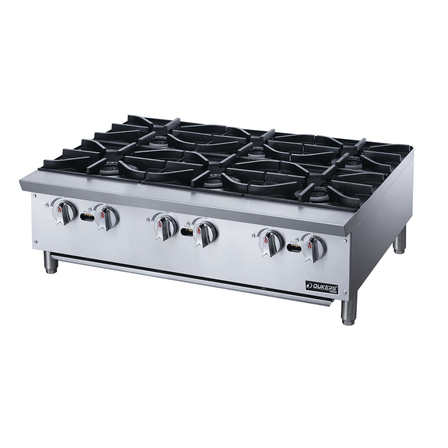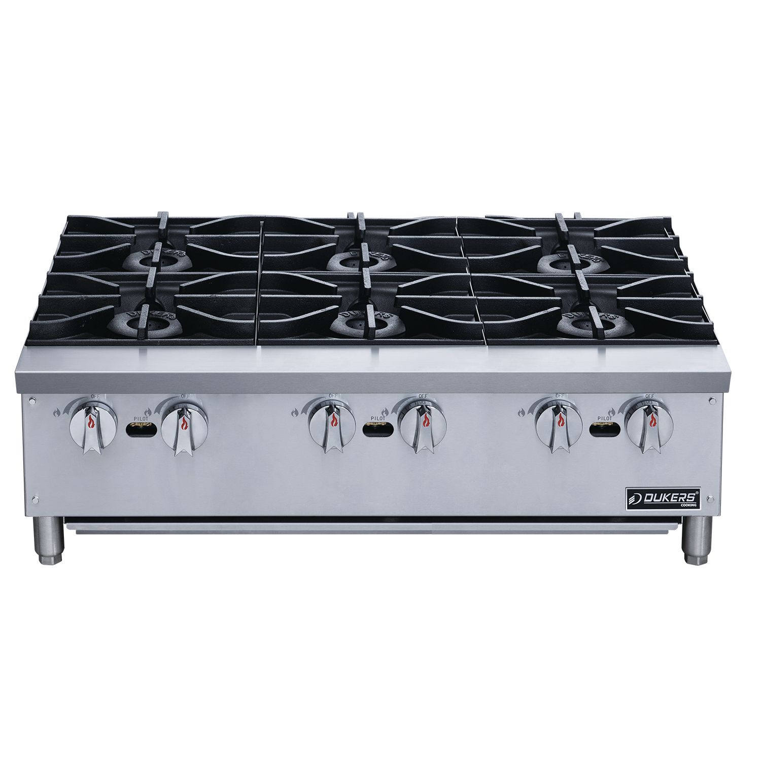 Commercial Gas Hotplate Cooktop in Stainless Steel with Six Lift-Off Burner Hot Plate