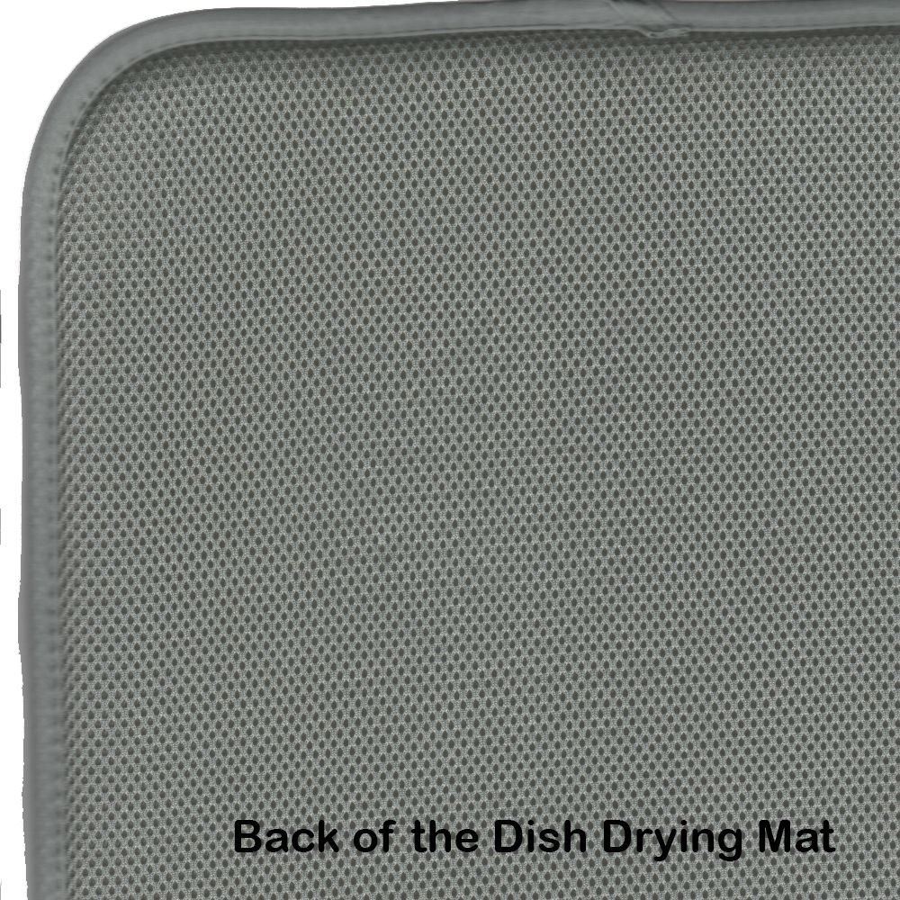 Dish Drying Mat featuring breed specific Pug artwork. Say goodbye to messy countertops and soggy dish towels with our innovative dish drying mat. Our high-quality dish drying pad is designed to keep your countertops dry while offering a stylish and efficient solution. Whether you're air drying dishes, glasses, stemware, silverware, pots, pans, bottles, or even fruits and vegetables, our dish mat is the perfect choice. The 14 inches x 22 inches size fits most counters and dish drying racks, and the non-slip design ensures stability. Made with water-absorbent polyester and a polyurethane foam insert, our dish drying mat is not only functional but also durable. It's machine washable and printed in the USA for long-lasting use. The beautiful artwork adds flair to your kitchen decor, making it a perfect housewarming gift or present for any occasion. Upgrade your kitchen experience with our absorbent and versatile dish drying mat.