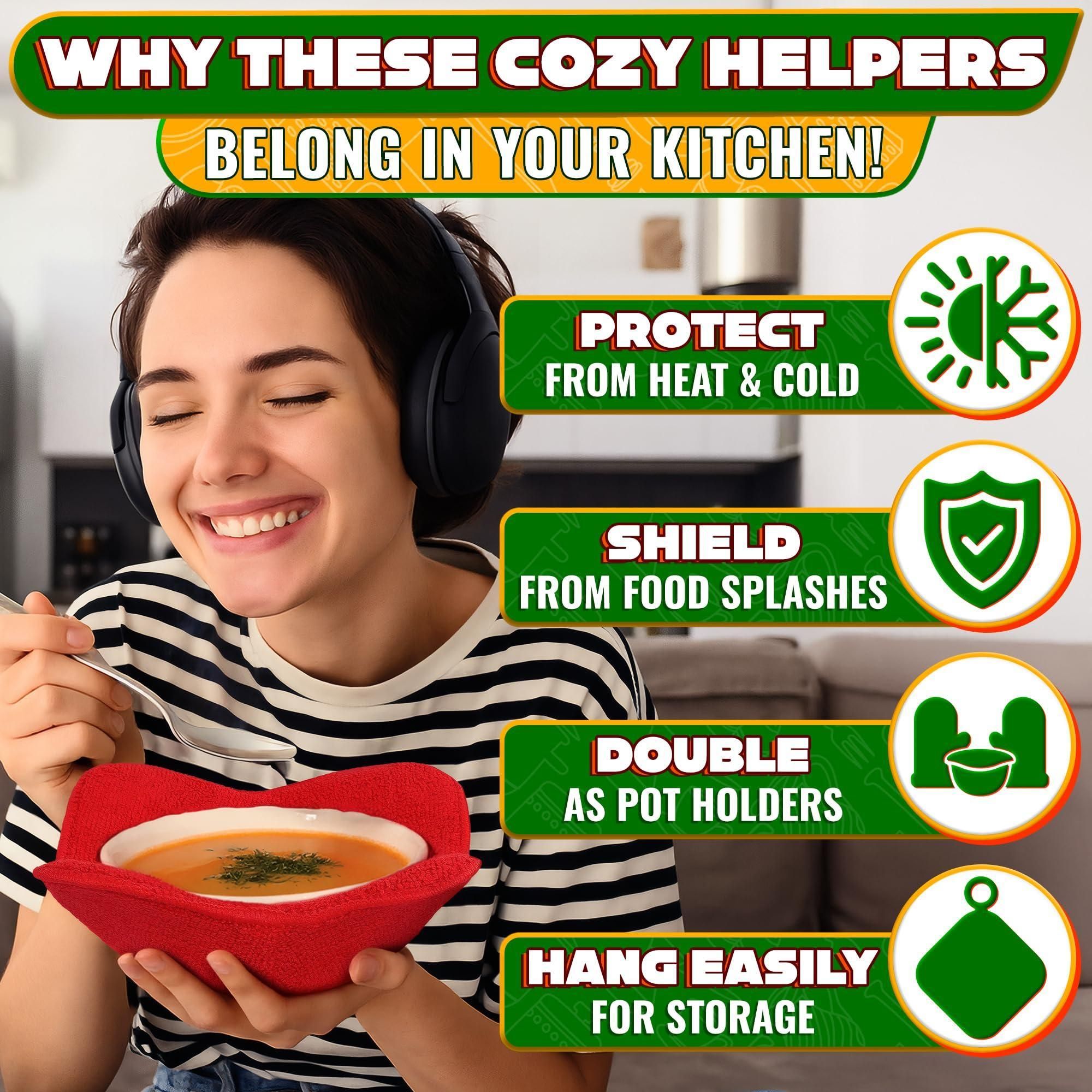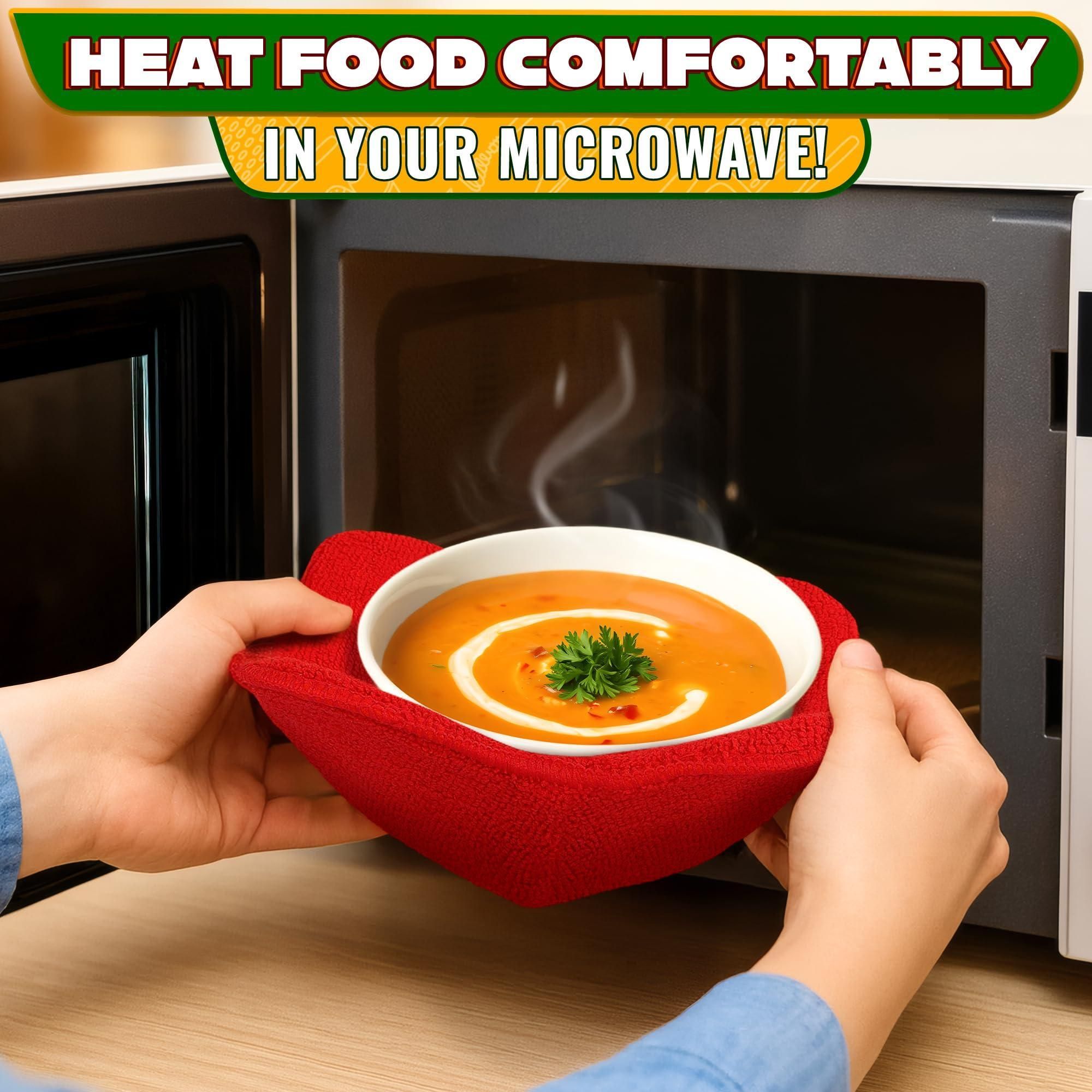 2 Pcs Red Microwave Bowl Holder 7.5 ×7.5 inch Microwave Bowl Cozy with Durable Heat Resistant Fabric for Hot Dishes Effortless Secure Serving of Hot F