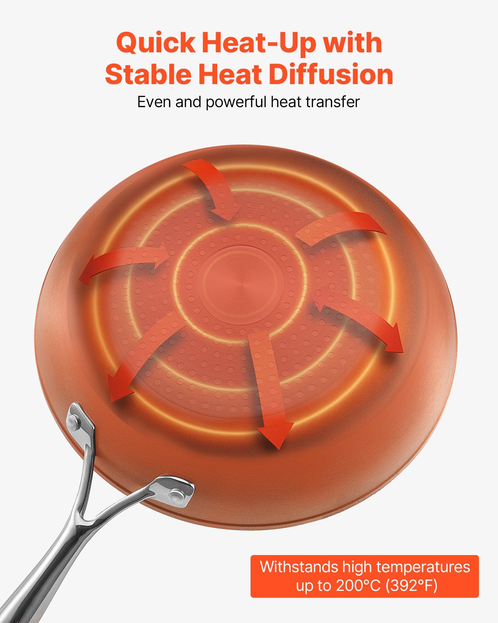 1.Cook Like a Pro: Our aluminum skillet set includes 8, 10, and 12-inch frying pans with a ceramic-coated cooking surface and heat-resistant exterior. The layered aluminum heats evenly and quickly, helping preserve nutrients and flavor in every dish
