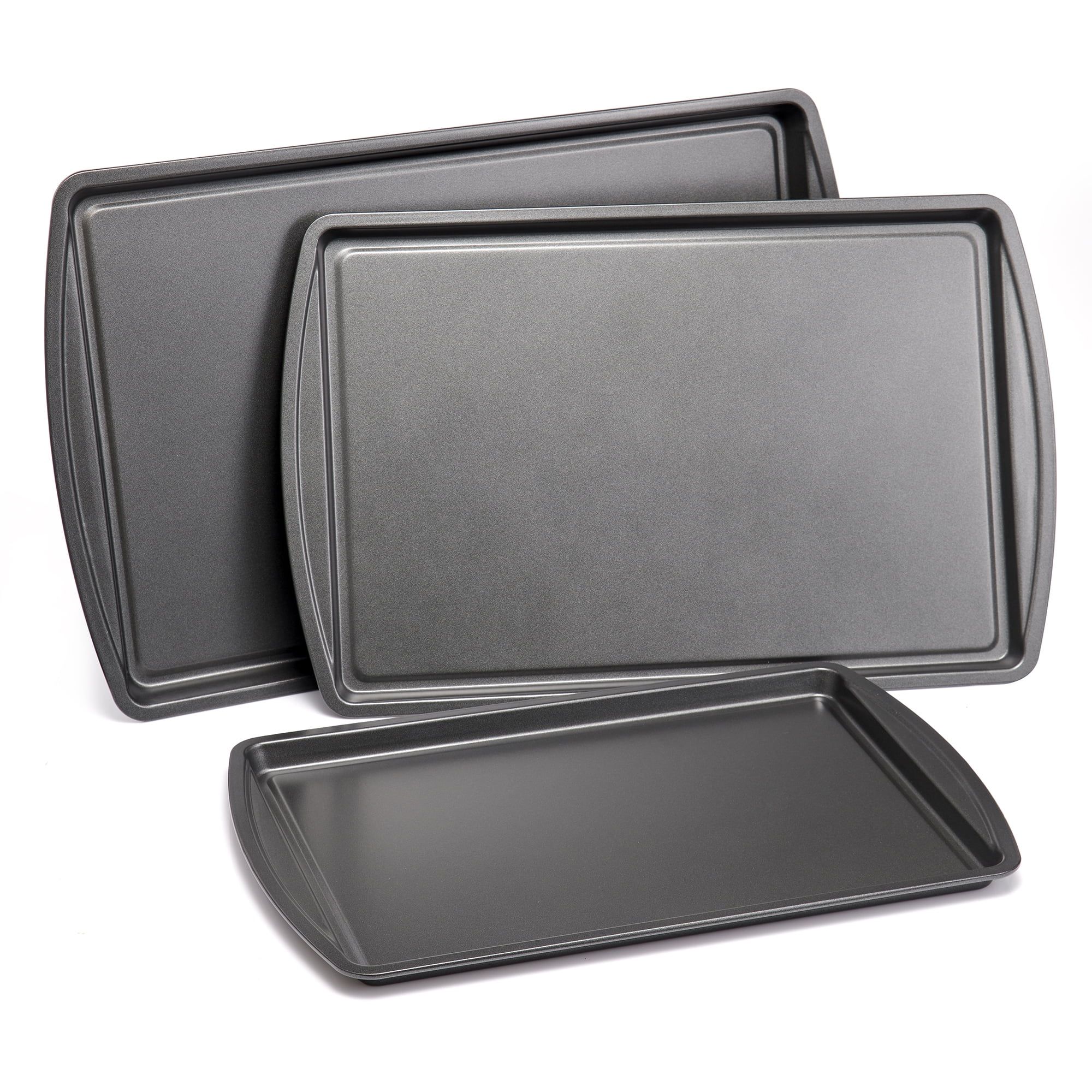 3pc Carbon Steel Nonstick Cookie Sheet Bakeware Set, 11" x 17", 10" x 15", 9" x 13", Gray