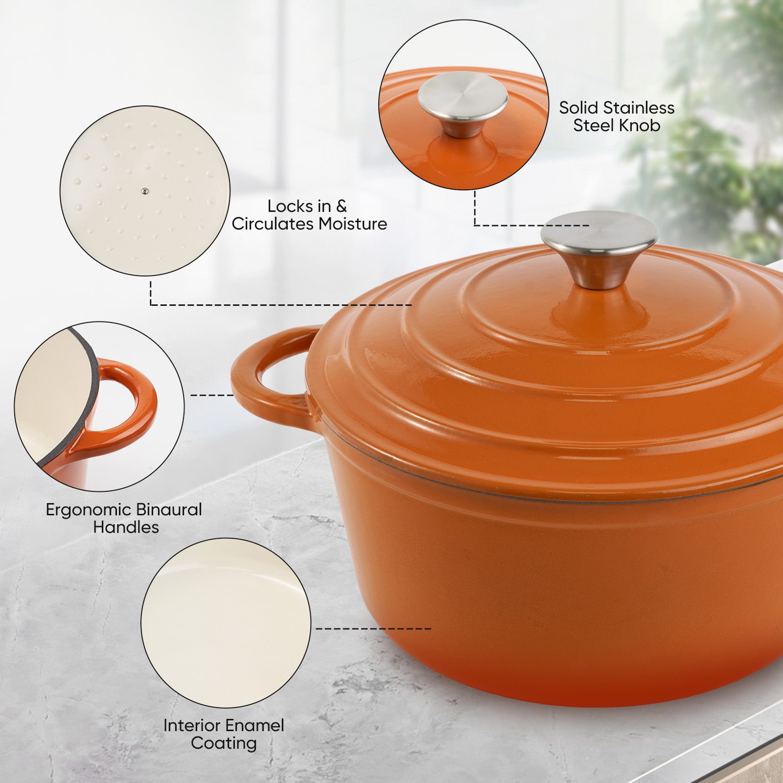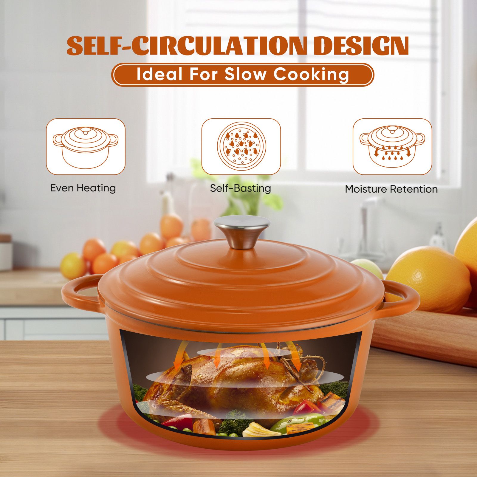 ��LARGE 6 QT CAPACITY:Our cast iron dutch oven can be used for multiple cooking methods such a cooking, baking, stewing etc.With this Large capacity enameled cast iron, can meet all the needs of family gatherings.The highest temperature tolerance is as high as 500°F.