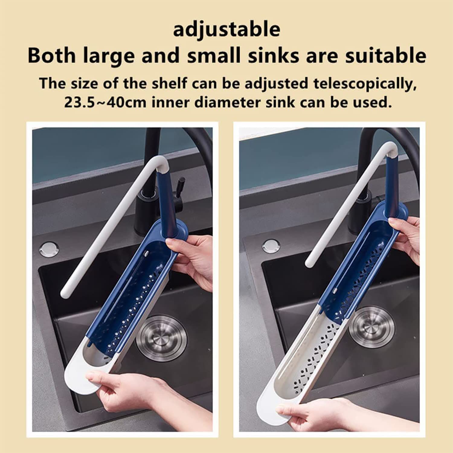 Telescopic Sink Storage Rack Maximum stretch to 17.7in,Adjustable Telescopic 2-in-1 Sink,Expandable Storage Drain Basket for Kitchen sink